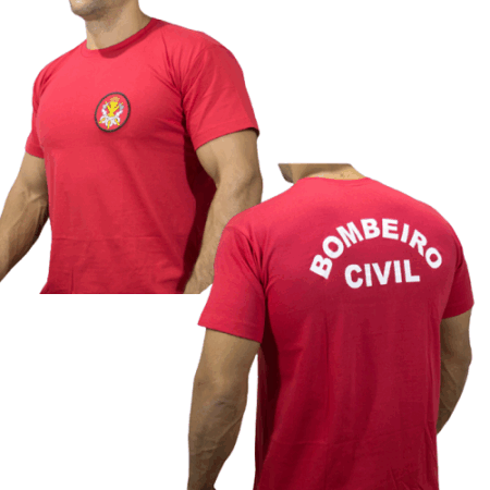 • CAMISA POLIESTER BOMBEIRO CIVIL VERMELHA BORDADA E SILK