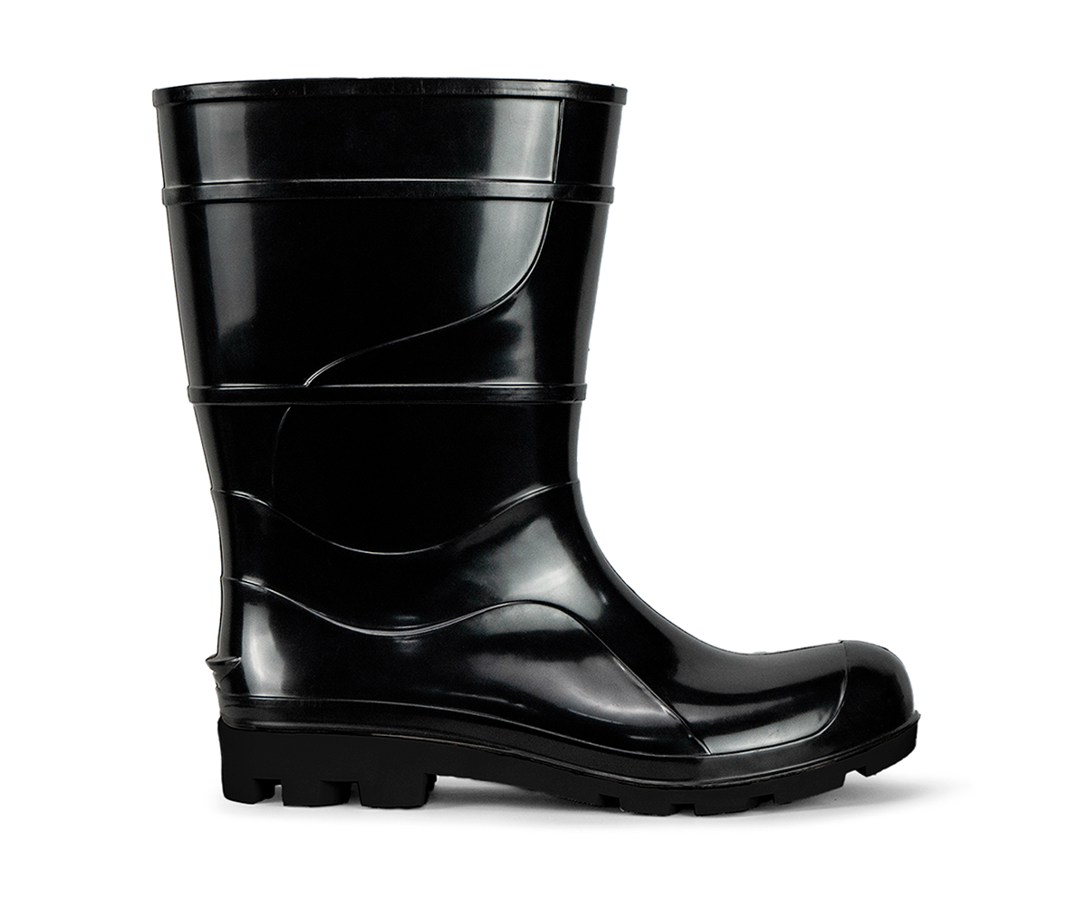 Bota Mod. 203 PVC Preta s/Forro Crival – Bota de PVC preta sem forro, modelo cano médio, leve e resistente. Indicada para trabalhos em ambientes úmidos, oferece excelente proteção contra água e sujeira, além de solado antiderrapante que garante segurança e estabilidade durante o uso.
