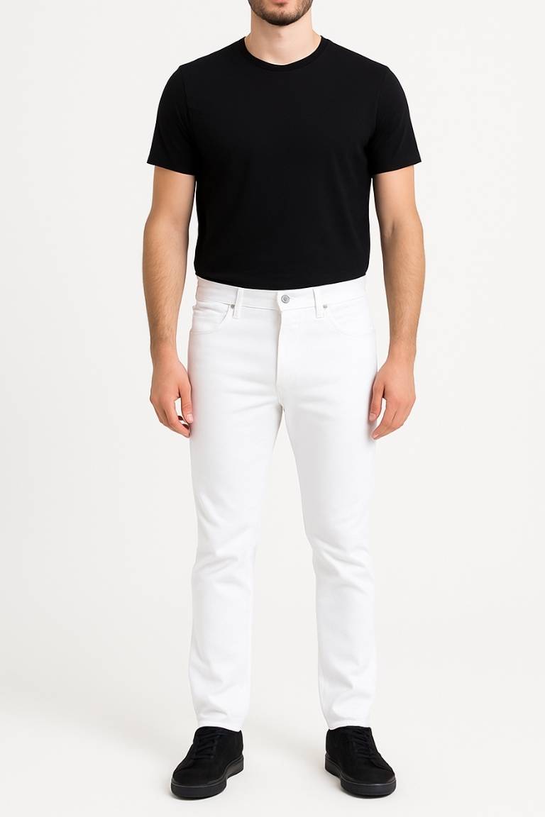 A Calça Branca Jeans Masculina Rabih combina estilo e resistência em um design moderno e versátil. Produzida em tecido jeans de alta qualidade, com elastano para melhor ajuste e conforto, é ideal para uniformes profissionais,