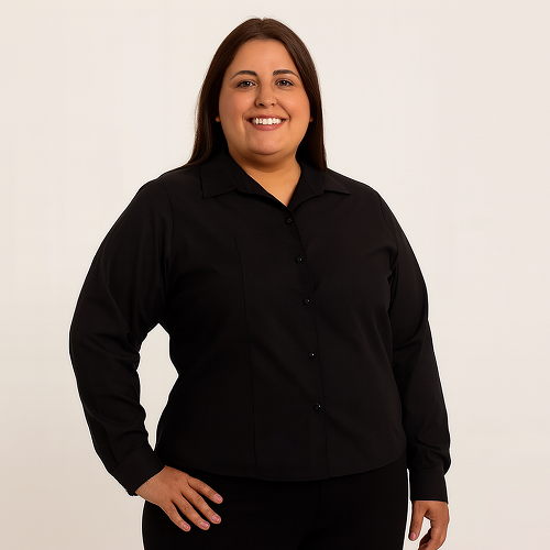 Camisa Social Feminina Manga Longa Plus Size – Elegante e confortável, com modelagem que valoriza o corpo. Ideal para uso profissional, garantindo estilo e liberdade de movimento.