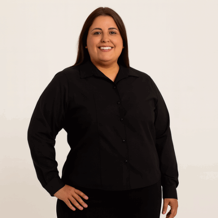 Camisa Social Feminina Manga 3/4 – Elegante e confortável, ideal para ambientes profissionais. O comprimento 3/4 garante praticidade, estilo e sofisticação ao visual corporativo.