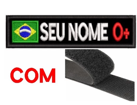 Tarjeta Bordada Nome e Tipo Sanguíneo COM Velcro – Personalizada e prática, ideal para identificação profissional. Oferece durabilidade, visual organizado e fácil leitura das informações.